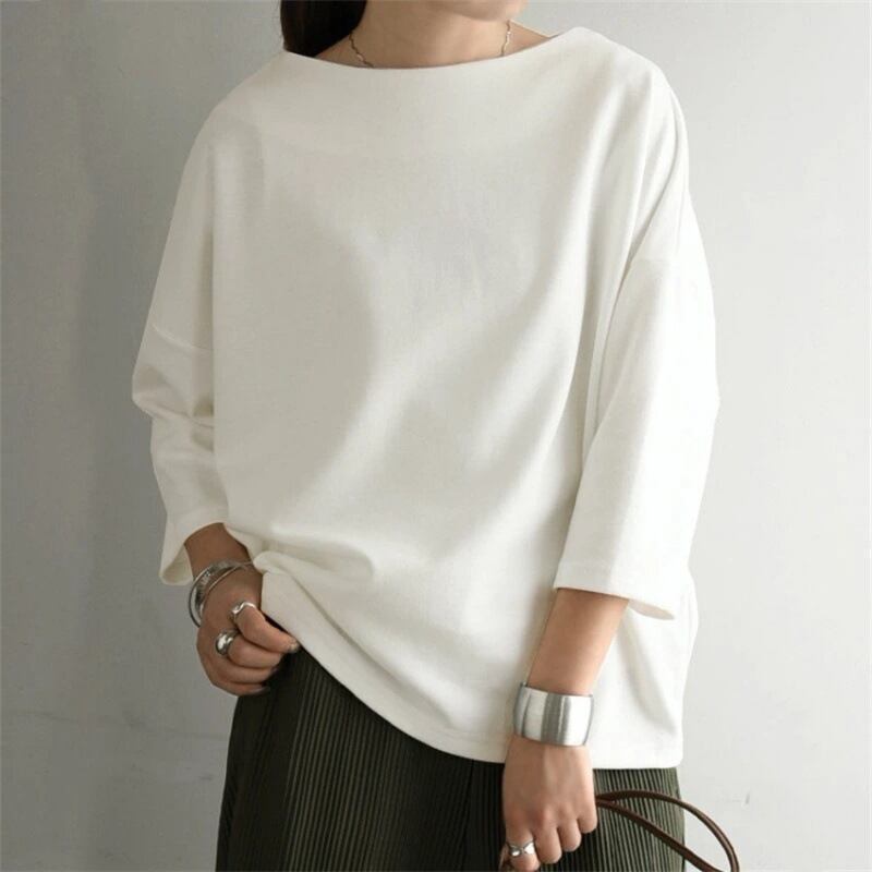 トップス レディース 送料無料 カットソー シャツ プルオーバー ビッグシルエット クルーネック パフスリーブ ドルマンスリーブ 七分袖 ホワイト ブラック ネイビー ブラウン グリーン ボーダー カジュアル シンプル 可愛い おしゃれ お洒落 こなれ感 抜け感 爽やか 清潔感 涼し 清楚 きれいめ ラフ ゆったり ゆる 楽ちん 大きめ ワイド S M L 春服 夏服 10代 20代 30代 40代 おでかけ デート モテ 通学 学生 休日 散歩 着回し 普段使い 韓国 オルチャン ファッション コーデ