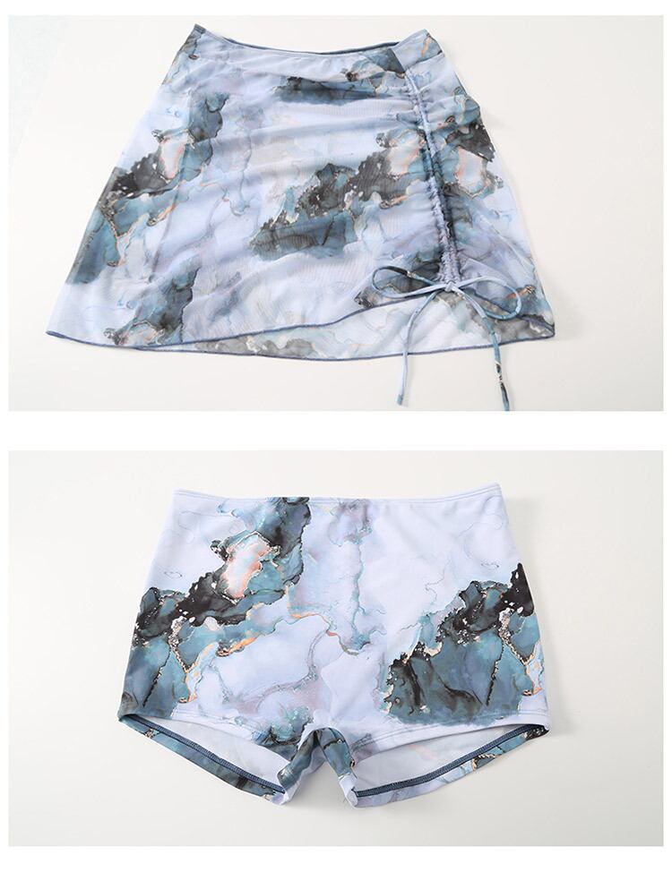 クロップトップスとスカート風パレオ付きのビキニ4点セットです。