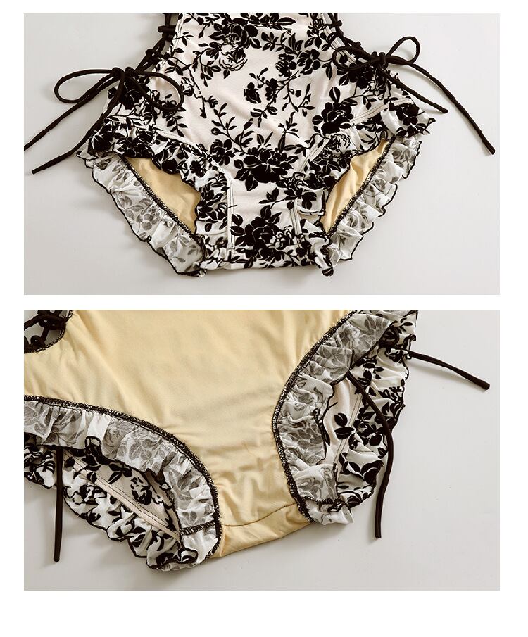 レトロな小花柄と腰の華奢なリボンがガーリーで上品なデザインです。