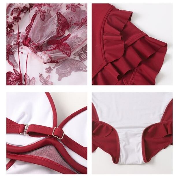 水着 ワンピース 3色 キャミソール カーディガン クロップ丈 カバー 2点セット 送料無料 Aライン 蝶々 シアー シック 透け感 フロントクロス カットアウト フリル ブラウス シフォン スイムウェア かわいい 大人可愛い きれいめ 大人 大人っぽい ラブリー キュート 夏 海 ビーチ プール リゾート トレンド 流行 10代 20代 30代 40代 50代 ホワイト ブラック レッド M L XL 2XL