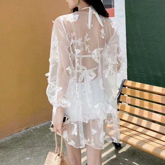 オールインワン水着とシアーなシャツカーディガンの2点セットです。