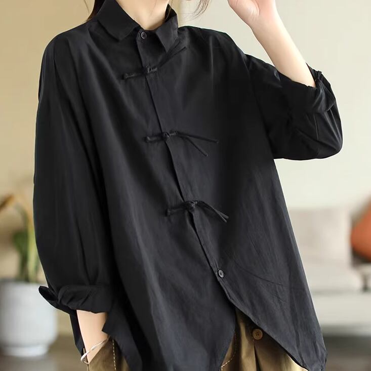 レディース トップス シャツ ブラウス 前開き Yシャツ 長袖 チャイナ 襟付き アシンメトリー ボタン 薄手 かわいい 大人可愛い きれいめ シンプル カジュアル 上品 おしゃれ かっこいい レトロ アジアン こなれ感 ラフ ガーリー ルーズ 個性的 エレガント モダン 主役級 存在感 とろみ感 抜け感 ラブリー キュート ベーシック ロマンティック ナチュラル 無地 デート お出かけ 女子会 休日 ショッピング コーデ 楽ちん 普段使い モテ 流行 L XL 2XL ゆったり ゆる ホワイト ブラック