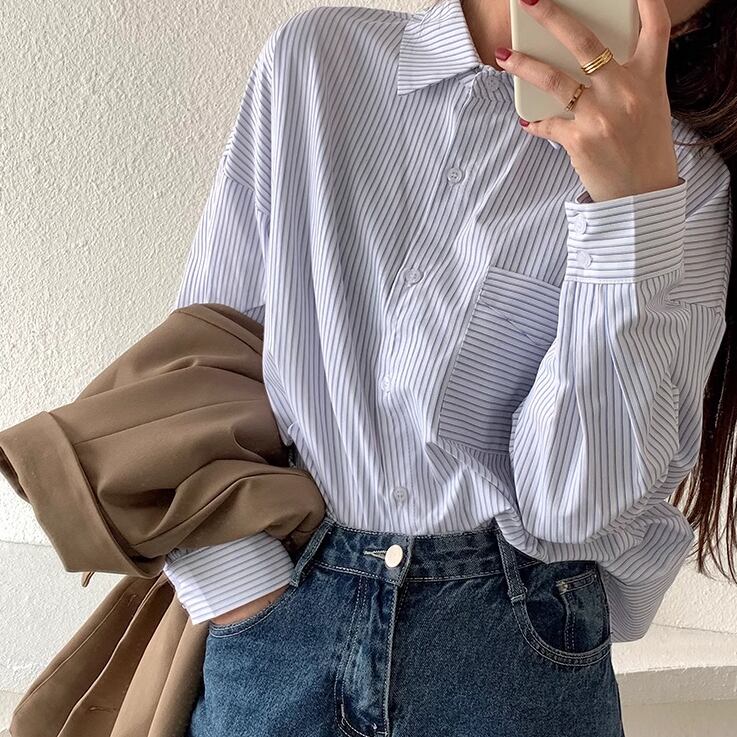レディース トップス シャツ ブラウス 前開き Yシャツ 長袖 襟付き ワイド ポケット ボタン 薄手 かわいい 大人可愛い きれいめ シンプル カジュアル 上品 おしゃれ かっこいい レトロ こなれ感 ラフ ボーイッシュ ガーリー ルーズ 個性的 クール エレガント モダン 主役級 存在感 抜け感 キュート 都会的 ベーシック ナチュラル ストライプ 春 秋 ママ デート お出かけ レストラン 公園 女子会 休日 ショッピング お花見 カフェ コーデ 普段使い 清楚 S M L XL ゆったり ゆる