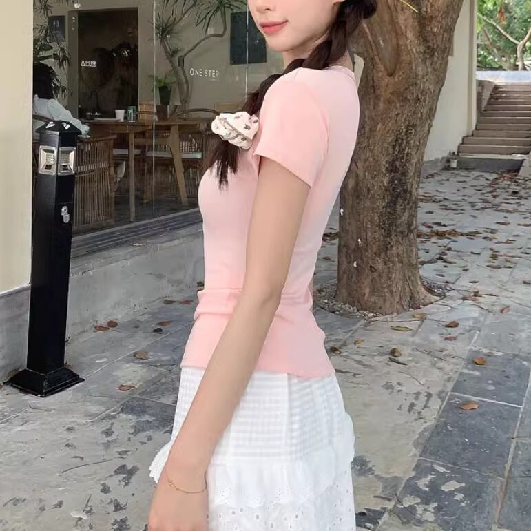 洗練された女性にぴったりのスリムな半袖Tシャツ