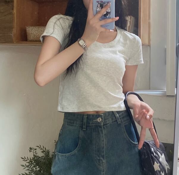 レディース トップス シャツ Tシャツ ショート クロップド丈 半袖 ラウンドネック 襟なし ストリート かわいい シンプル カジュアル おしゃれ かっこいい ラフ メンズライク ボーイッシュ スポーティー 存在感 ベーシック アクティブ 無地 春 夏 秋 ロングシーズン アウトドア 学生 お出かけ アウトドア キャンプ 公園 休日 ショッピング コンサート ライブ 韓国 オルチャン 楽ちん 脚長 プチプラ 普段使い 着回し トレンド 流行 定番 S M L アプリコット ベーシックカラー 春カラー