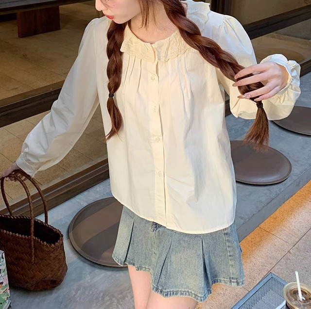 カラーシャツ レディース トップス シャツ ブラウス 前開き 長袖 ラウンドネック 襟付き フェミニン レース かわいい 大人可愛い きれいめ 上品 おしゃれ ガーリー エレガント 存在感 抜け感 ラブリー キュート クラシカル ロマンティック ナチュラル 無地 春 秋 学生 デート お出かけ イベント 女子会 休日 ショッピング コンサート ライブ お花見 合コン コンパ カフェ 婚活 プチプラ 普段使い 着回し モテ 清楚 インスタ映え フリーサイズ ブルー アプリコット 春カラー