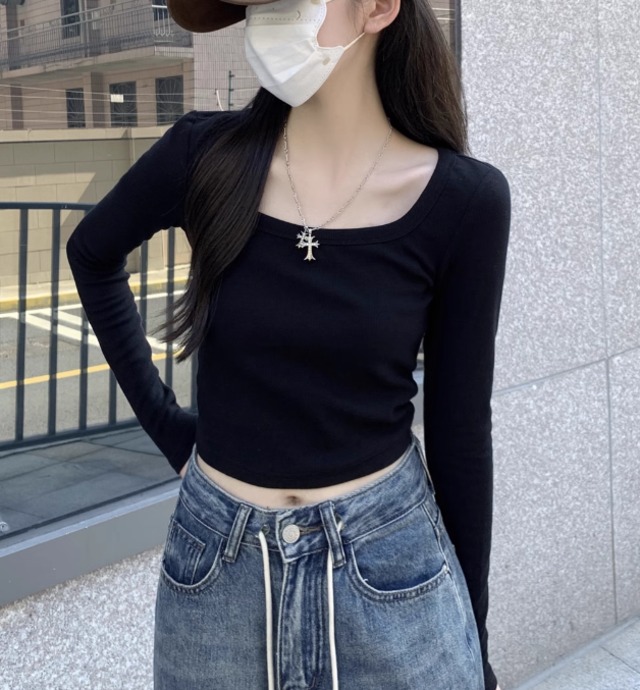 レディース トップス ロンT シャツ カットソー クロップド丈 長袖 襟なし スクープドネック ストリート かわいい シンプル カジュアル おしゃれ かっこいい ラフ メンズライク マニッシュ ボーイッシュ 存在感 ベーシック アクティブ 無地 春 夏 秋 ロングシーズン 学生 デート お出かけ アウトドア イベント 公園 女子会 休日 ショッピング コンサート ライブ お花見 カフェ 双子 韓国 オルチャン プチプラ 普段使い 着回し 定番 S M L ホワイト ブラック グレー ベーシックカラー