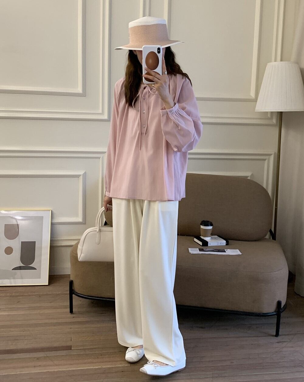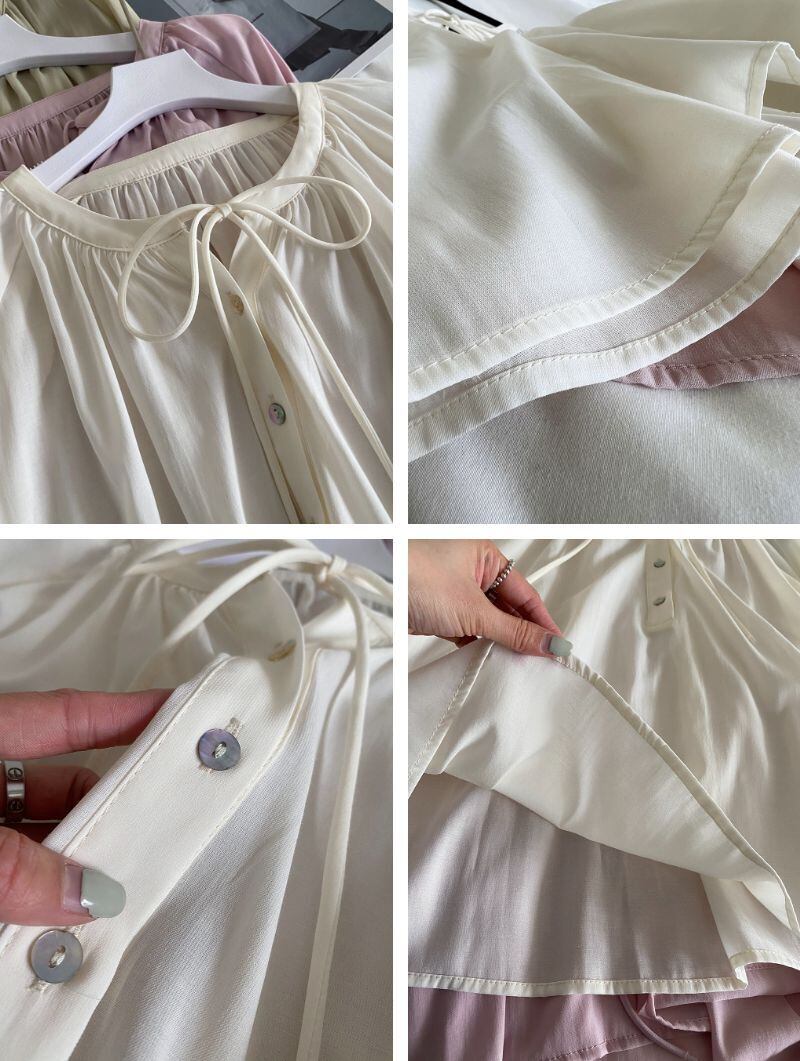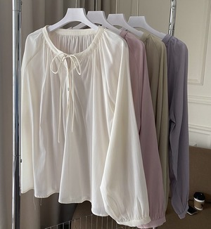 ギャザーブラウス レディース トップス ブラウス ミディアム丈 長袖 パフスリーブ ヘンリーネック 襟なし 首元リボン オーバーサイズ ルーズフィット 透け感 シェルボタン 薄手 かわいい 大人可愛い きれいめ シンプル カジュアル 上品 おしゃれ こなれ感 キュート ナチュラル 無地 春 夏 ママ マタニティ 女の子 学生 学校 通学 デート お出かけ リゾート 旅行 公園 女子会 休日 バカンス 重ね着 体型カバー 普段使い 着回し レイヤード ゆる フリーサイズ ホワイト ピンク ライトグリーン
