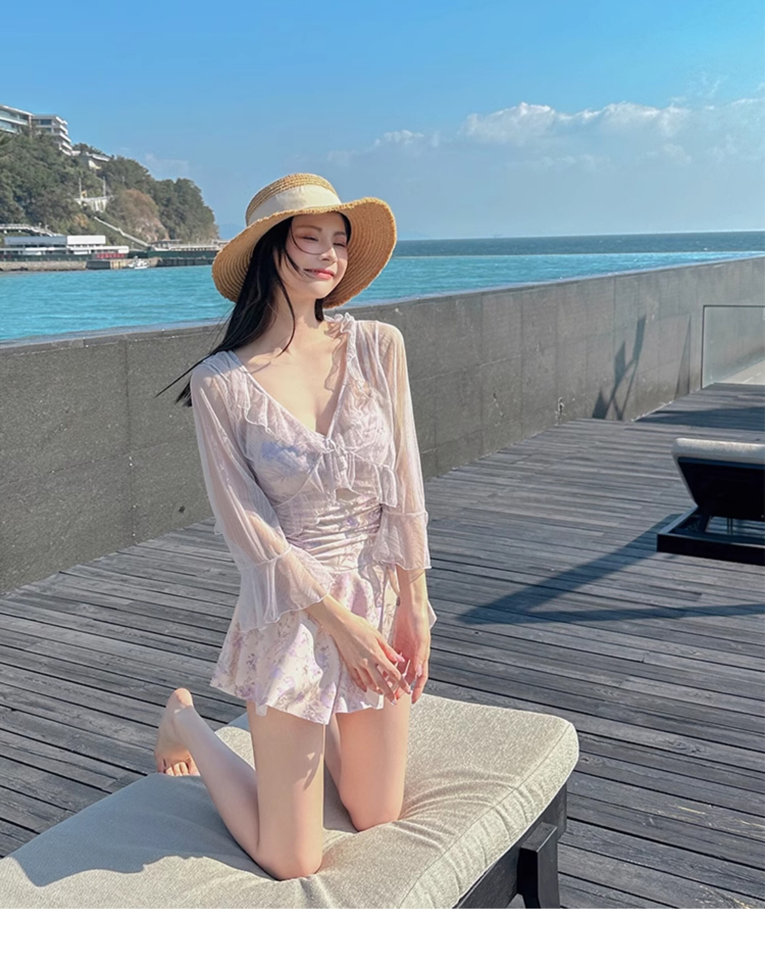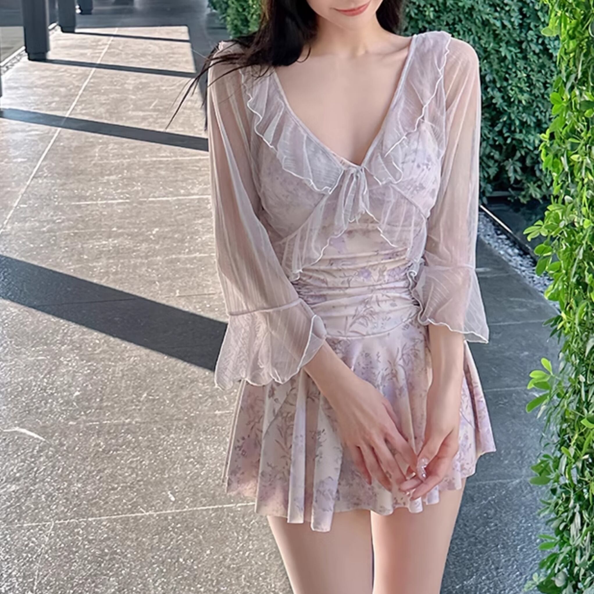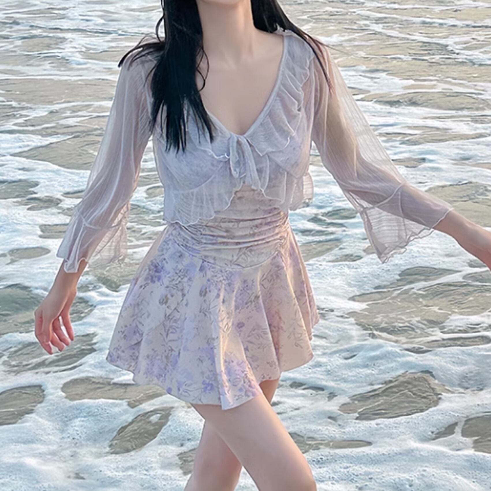 キャミワンピースとシアーなシャツカーディガンの2点水着セットです。