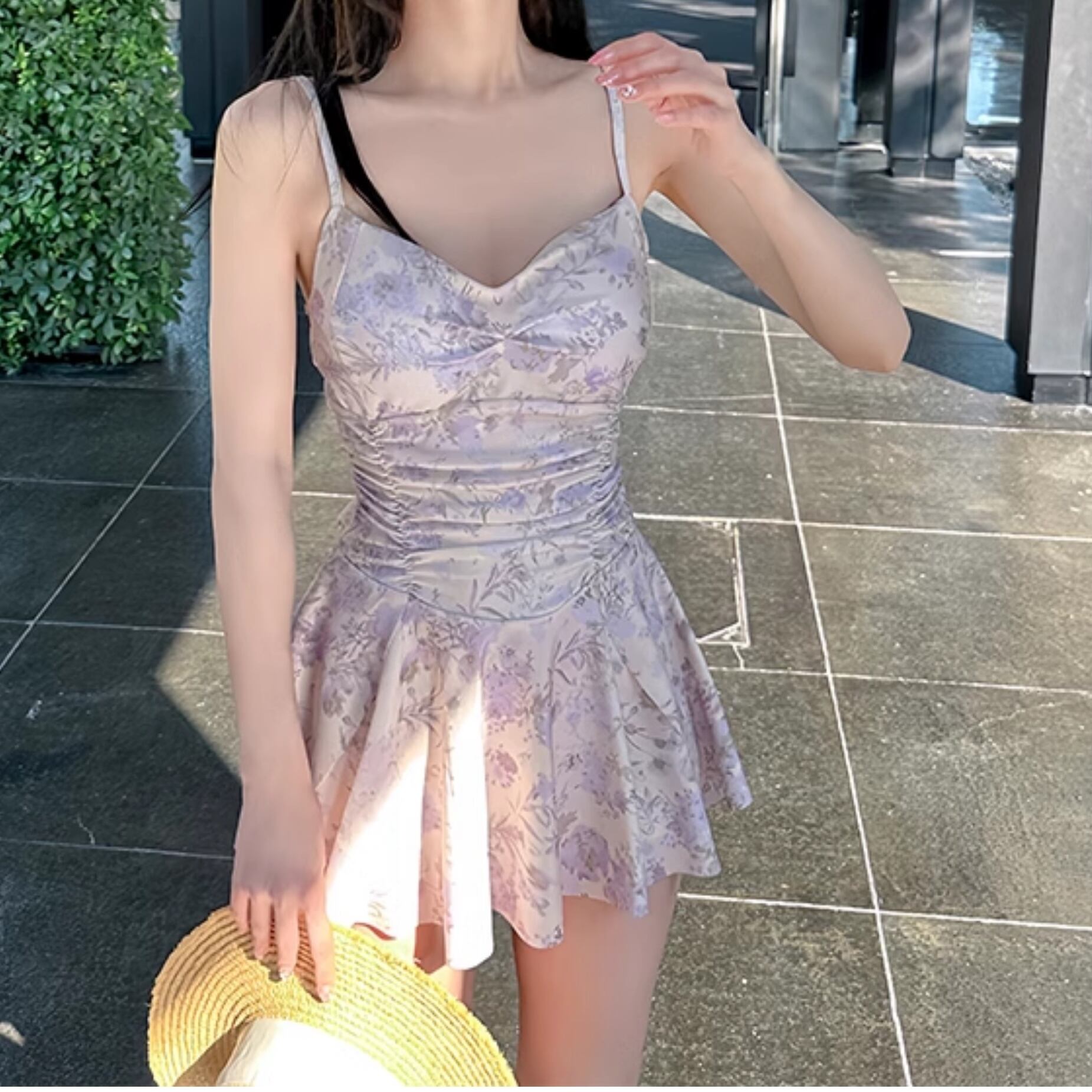 水着 ワンピース キャミソール カーディガン クロップ丈 カバー 2点セット 送料無料 Aライン フリル シック 花柄 透け感 ストライプ シャーリング フレアスカート フリル ブラウス シフォン スイムウェア かわいい 大人可愛い きれいめ 大人 大人っぽい ラブリー キュート 夏 海 ビーチ プール リゾート トレンド 流行 10代 20代 30代 40代 50代 パープル M L XL 2XL