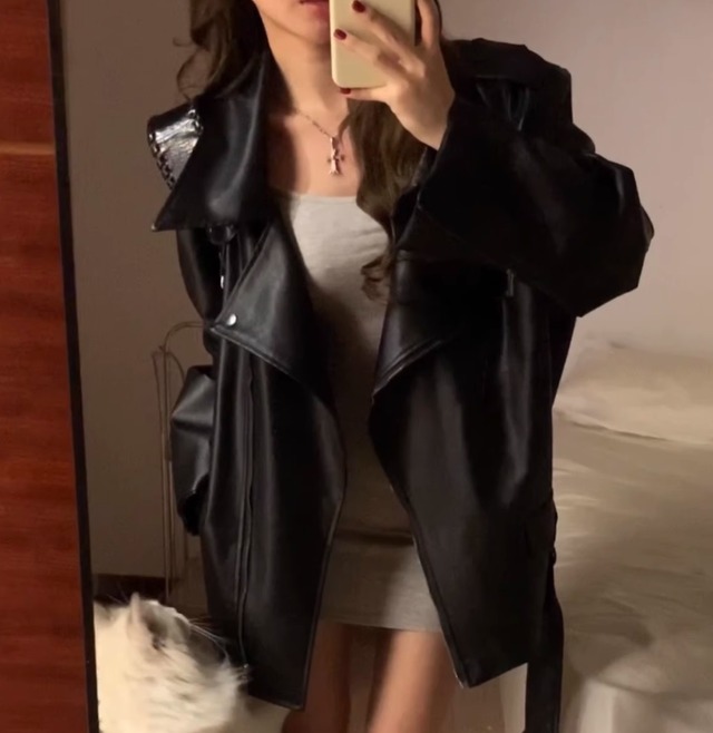 レザージャケット レディース ジャケット アウター 羽織 前開き 長袖 襟付き オーバーサイズ アメカジ レザー かわいい 大人可愛い カジュアル おしゃれ かっこいい メンズライク マニッシュ ボーイッシュ クール モード系 存在感 ヴィンテージ ワイルド 無地 春 秋 学生 お出かけ イベント 女子会 休日 ショッピング コンサート ライブ カフェ ツーリング 重ね着 プチプラ 普段使い 着回し インスタ映え S M L XL 2XL 小さいサイズ 大きいサイズ 黒 ブラック
