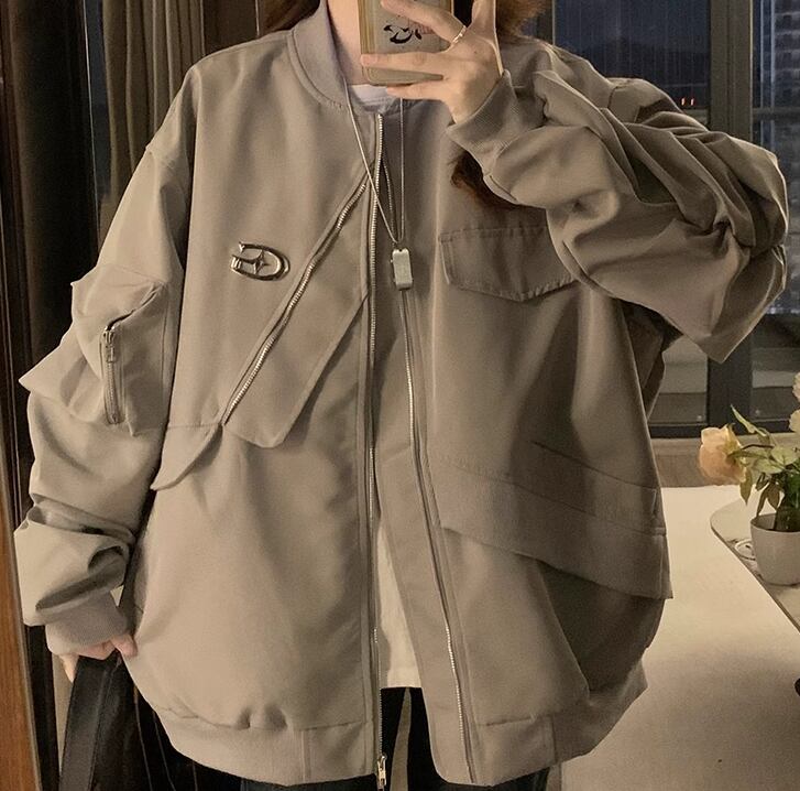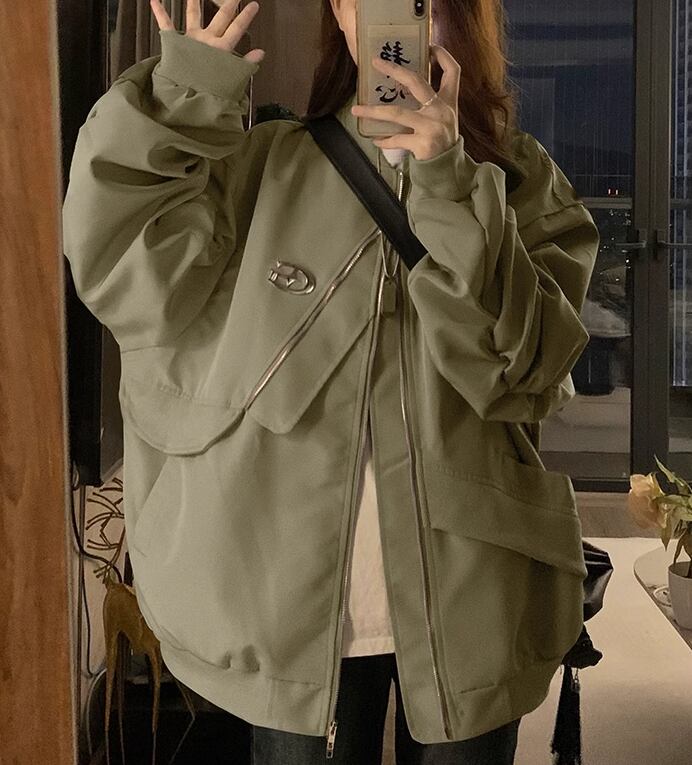 レディース ジャケット ブルゾン アウター 羽織 前開き 長袖 襟なし オーバーサイズ ストリート ファスナー かわいい シンプル カジュアル おしゃれ かっこいい メンズライク マニッシュ ボーイッシュ クール 存在感 アクティブ ワイルド 無地 春 秋 冬 学生 お出かけ アウトドア イベント 公園 女子会 休日 ショッピング カフェ ツーリング 重ね着 防寒 プチプラ 普段使い 着回し インスタ映え S M L XL 2XL 小さいサイズ 大きいサイズ ゆったり ゆる グリーン ブラック グレー
