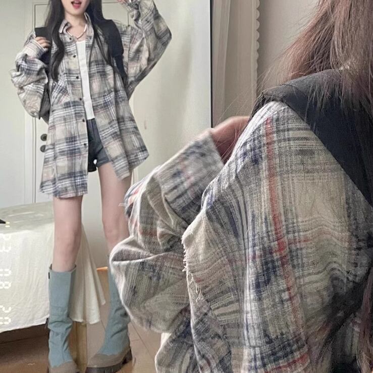 チェック柄シャツ レディース トップス シャツ アウター 羽織 前開き 長袖 襟付き オーバーサイズ ストリート かわいい シンプル カジュアル おしゃれ かっこいい メンズライク マニッシュ ボーイッシュ クール 存在感 アクティブ ワイルド チェック 春 秋 学生 お出かけ アウトドア イベント 公園 女子会 休日 ショッピング コンサート ライブ カフェ 重ね着 プチプラ 普段使い 着回し インスタ映え S M L XL 2XL 小さいサイズ 大きいサイズ ゆったり アプリコット