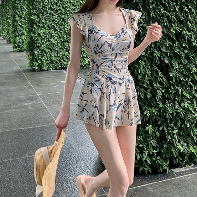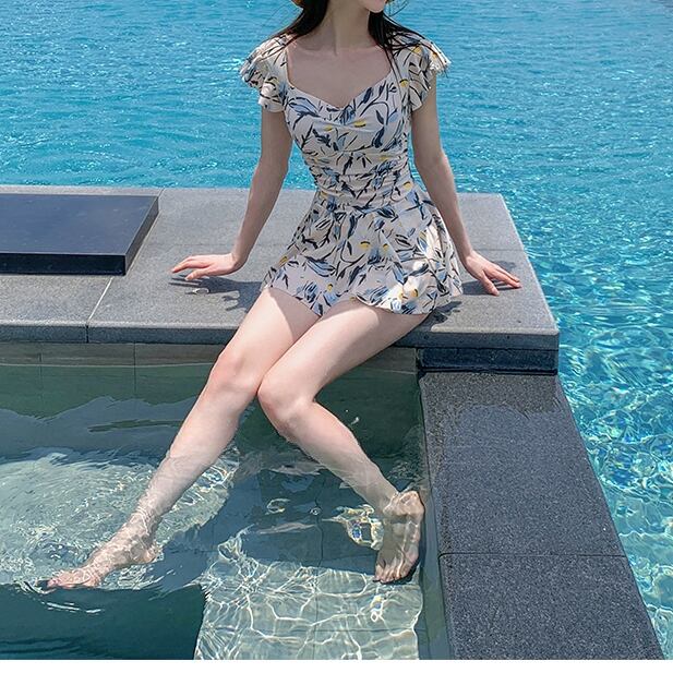 フレアスカートが可愛いビキニパンツ付きワンピース水着です。