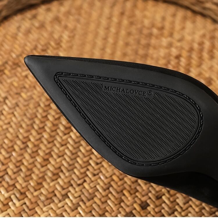 太めのチャンキーヒールが安定感抜群で、洗練されたニュアンスをプラスします。