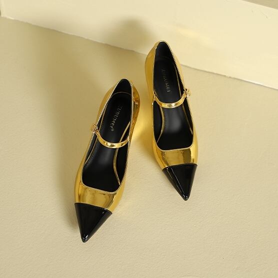 大人可愛いこなれたツートーン切り替えがレトロな雰囲気のポインテッドトゥパンプス。