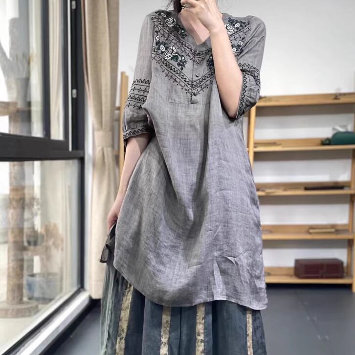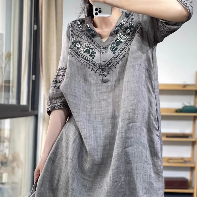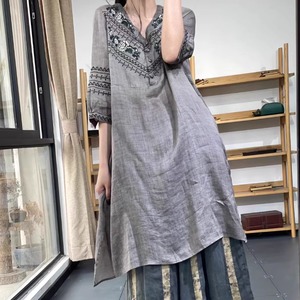 繊細な刺繍とゆるっとした薄手のリネン素材が魅力の一枚