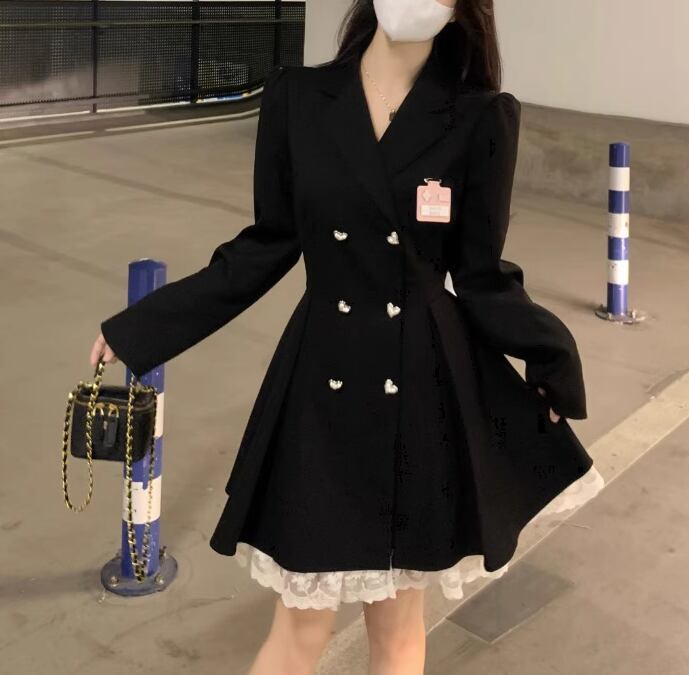 レディース ワンピース ミニ 膝上 長袖 Vネック 襟付き 重ね着風 レース リボン ウエストマーク バックリボン ハイウエスト かわいい おしゃれ ガーリー エレガント 存在感 ラブリー キュート ゴシック ロリータ プリンセス ロマンティック 無地 春 秋 学生 デート お出かけ イベント 女子会 休日 ホテル ショッピング コンサート カフェ 体型カバー 脚長 プチプラ 普段使い 着回し モテ インスタ映え M L XL 2XL 3XL 4XL 大きいサイズ 黒 ブラック ベーシックカラー
