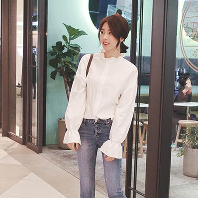 襟フリル レディース トップス ブラウス ゆったり ミディアム丈 長袖 ドロップショルダー キャンディスリーブ 袖口フレア 襟付き スタンドカラー フリルカラー かわいい 大人可愛い きれいめ シンプル カジュアル 上品 おしゃれ こなれ感 キュート フェミニン 無地 春 夏 秋 冬 シーズンレス ママ 女の子 OL 通勤 学生 学校 通学 デート お出かけ 公園 女子会 休日 重ね着 体型カバー 普段使い 着回し レイヤード 清楚 XS S M L XL 2XL 小さいサイズ 大きいサイズ 白 ホワイト