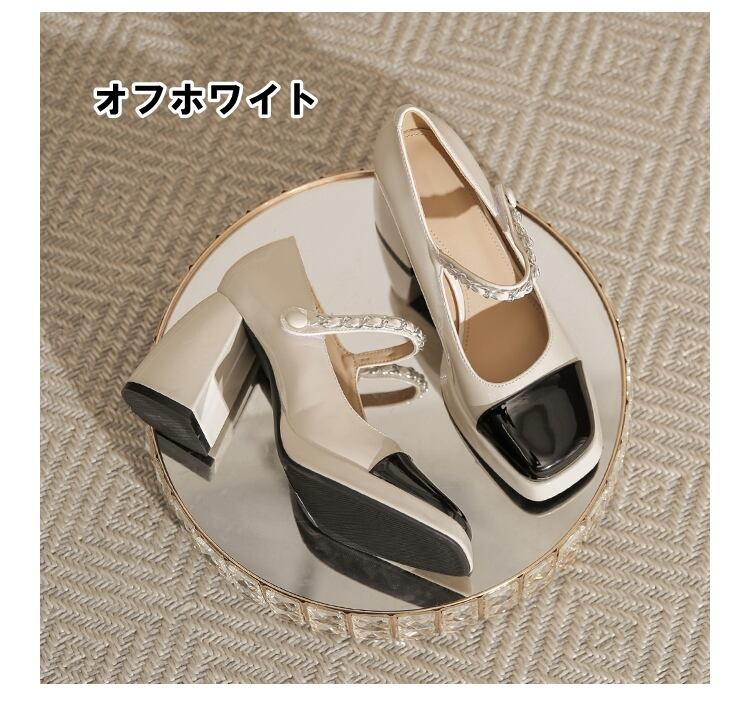 パンプス レディース スクエアトゥ プラットフォーム チェーン ストラップ付き バイカラー ハイヒール モチーフ付き ハイヒール 韓国系 オルチャン 楽ちん 美脚 送料無料 パーティー 旅行 リゾート 休日 女子会 お出かけ デート 10代 20代 30代 春 夏 秋 無地 小さいサイズ 大きいサイズ かわいい カジュアル かっこいい おしゃれ レトロ 大人女子 ガーリー 個性的 主役級 エレガント クール セクシー OL モード系 存在感 ギフト 二次会 学生 大人可愛 オフホワイト ブラック