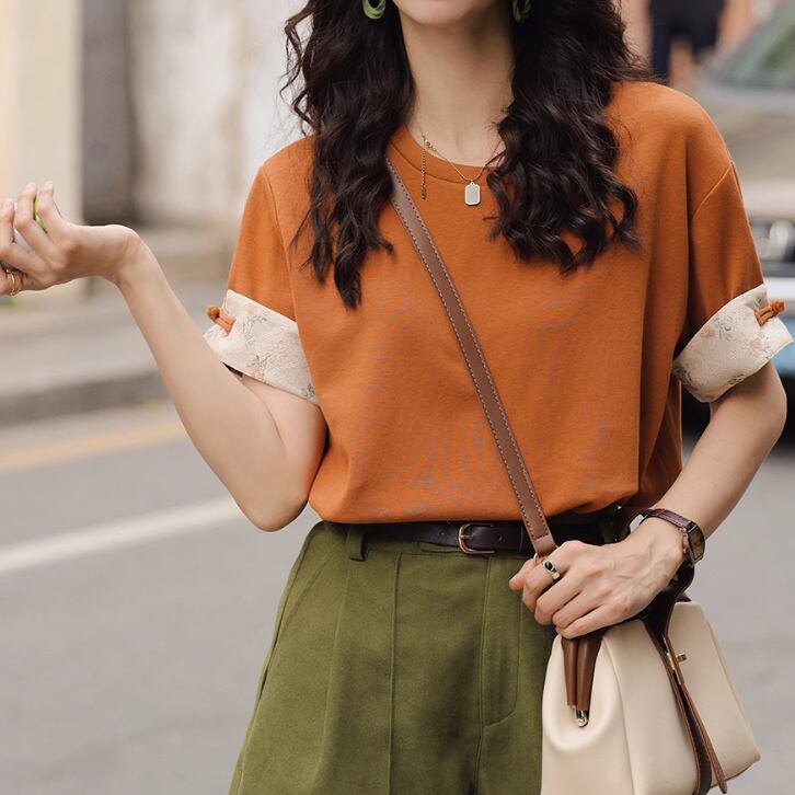 レディース トップス プルオーバー Tシャツ 半袖 ラウンドネック 襟なし ノーカラー 伸縮性 薄手 かわいい 大人可愛い きれいめ シンプル カジュアル 上品 おしゃれ かっこいい レトロ アジアン こなれ感 ラフ ガーリー ルーズ 個性的 クール エレガント モダン 主役級 とろみ感 抜け感 ラブリー キュート 都会的 ベーシック アクティブ ナチュラル 夏 デート お出かけ 旅行 公園 女子会 休日 ショッピング カフェ コーデ 楽ちん 普段使い ロールアップ 定番 S M ゆる オレンジ グリーン
