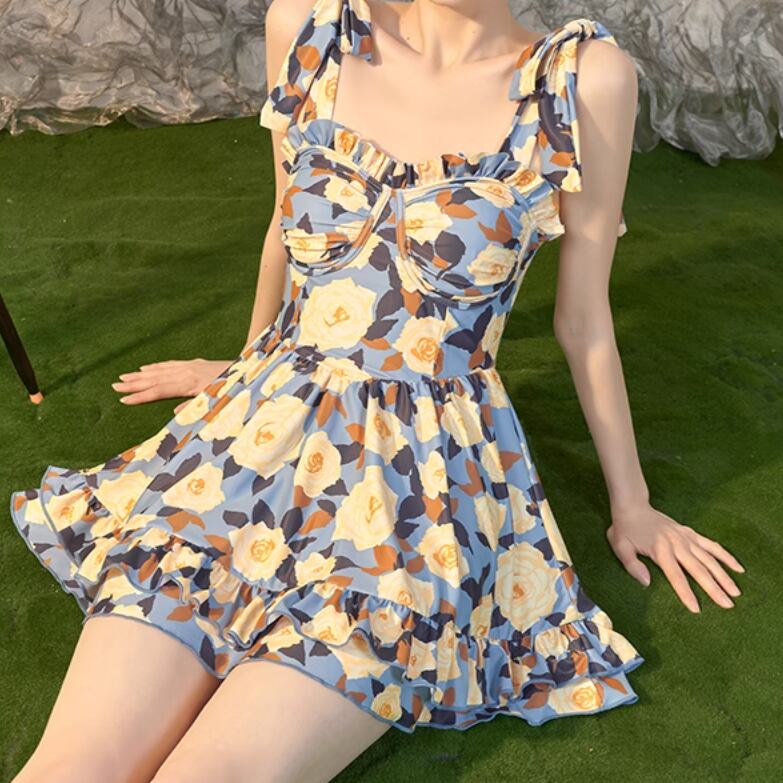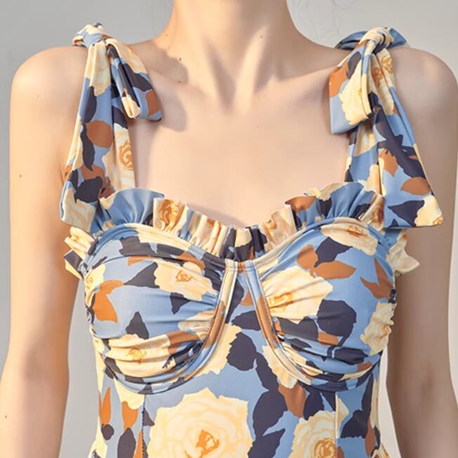 大人可愛いリボンと花柄がポイントの水着ワンピース