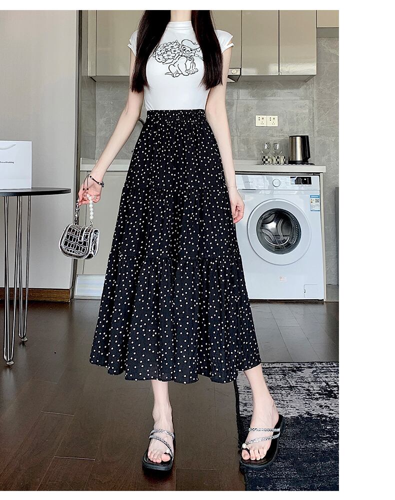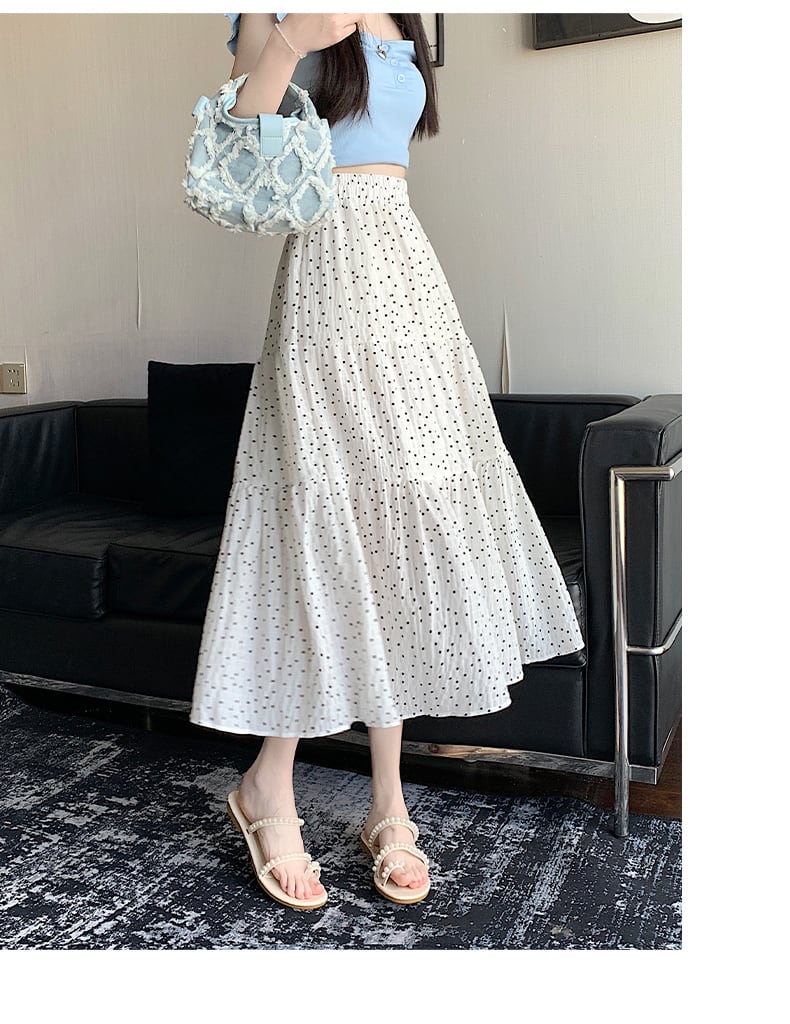 このかわいらしいドット柄のロングティアードスカートは、デートや女子会にぴったりのアイテムです。Aラインのシルエットが美しく、ロング丈でフェミニンな印象を与えます。シンプルながらも上品でおしゃれなデザインは、大人女子にもぴったりの一着。ロマンティックな雰囲気を演出してくれるので、主役級の存在感を放つこと間違いなしです。