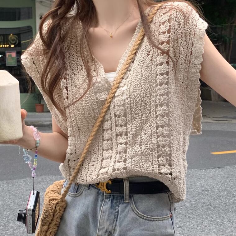 レディース トップス ニット フレンチスリーブ Vネック 襟なし かぎ針編み 透け感 かわいい 大人可愛い おしゃれ ラフ ガーリー 存在感 抜け感 キュート カントリー ナチュラル ボヘミアン 無地 春 夏 秋 ロングシーズン 学生 デート お出かけ イベント 女子会 休日 ショッピング コンサート ライブ お花見 カフェ 重ね着 韓国 オルチャン プレゼント プチプラ 普段使い 着回し モテ インスタ映え S M L 小さいサイズ 大きいサイズ アプリコット ベーシックカラー