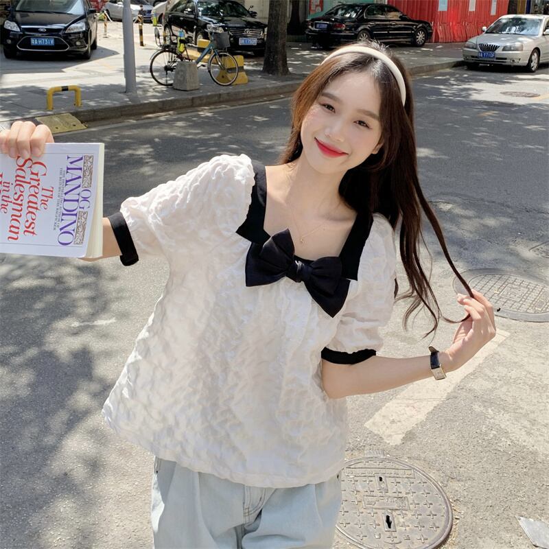 レディース トップス シャツ 半袖 パフスリーブ スクエアネック リボン かわいい 大人可愛い カジュアル おしゃれ レトロ こなれ感 ガーリー ルーズ ラブリー キュート お嬢様 無地 学生 学校 通学 デート お出かけ 女子会 ショッピング 韓国 コーデ 普段使い 着回し モテ トレンド 流行 インスタ映え S M L XL 2XL 3XL 4XL 5XL 大きいサイズ ビッグ ホワイト