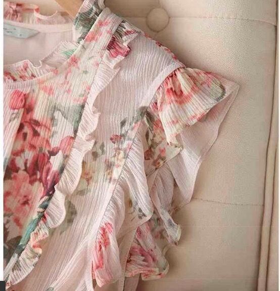 キュートでエレガントな女性らしい印象を演出する、ノースリーブフリル花柄ブラウスの登場です。スタンドカラーと切り替えデザインが、上品さを引き立てる一方、フレアスリーブとフリルがガーリーな魅力をプラス。透け感のある薄手の素材が涼しげで、これからの季節にぴったりの一枚です。カジュアルにもきれいめにも、様々なコーディネートに映えるアイテムとなっております。