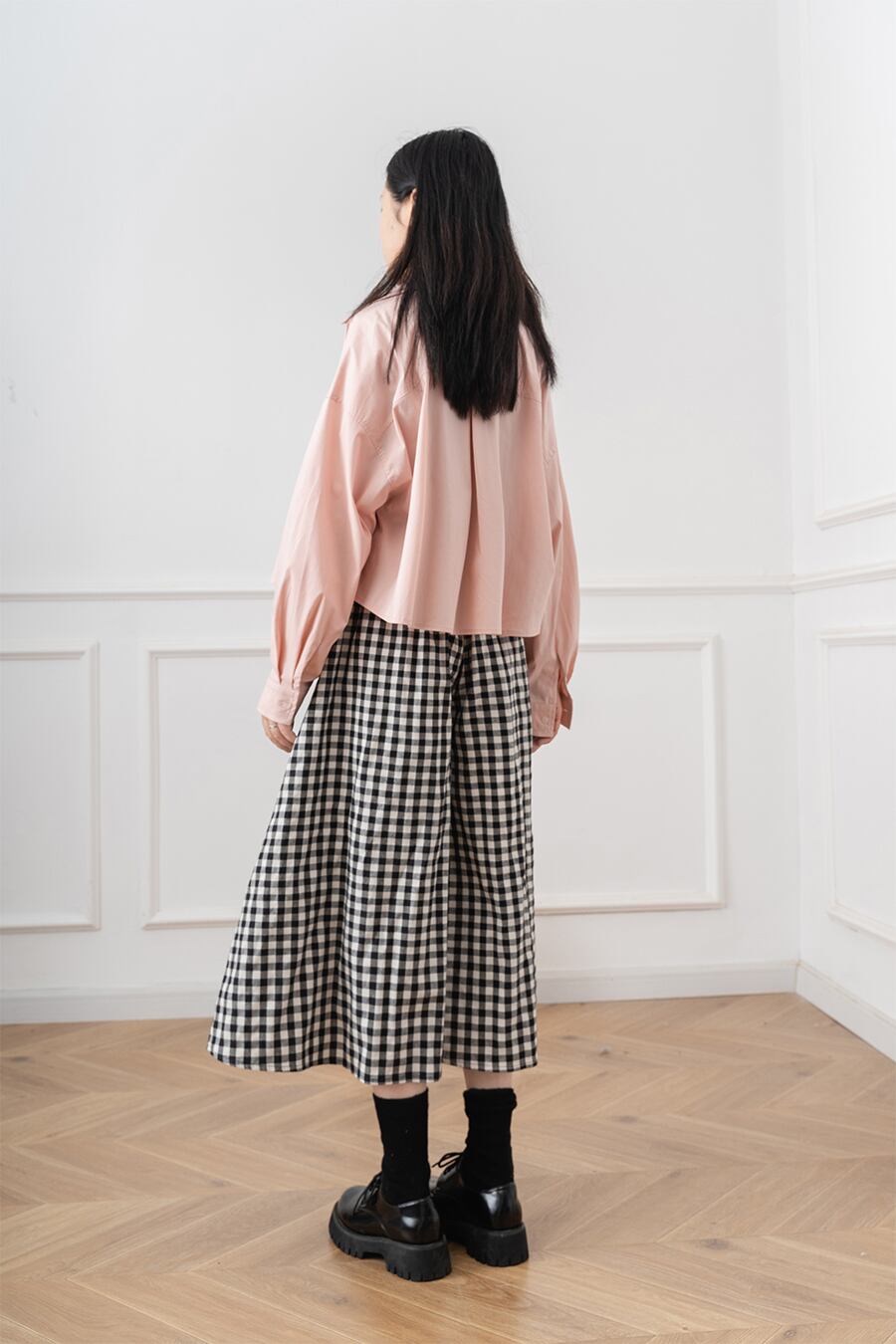 ギンガムチェック柄が可愛い、リラックス感たっぷりのワイドパンツをご紹介します。ウエストゴム仕様で快適な履き心地を叶え、伸縮性のある素材が動きやすさもサポートします。Aラインのシルエットが足元から華やかさを演出し、ポケット付きで機能性もバツグン。カジュアルからきれいめまで、幅広いスタイリングに活躍してくれる一着です。