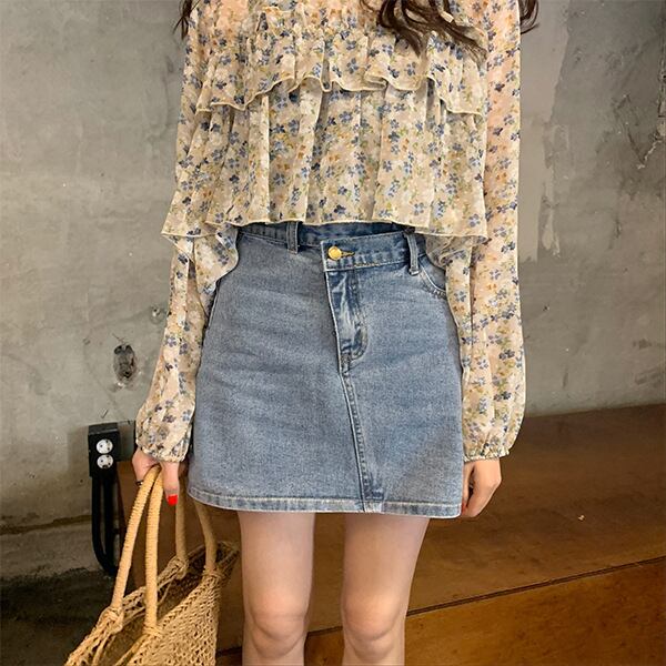 淡いくすみカラーの花柄がフェミニンなフリルブラウスです。前面にのみティアードフリルをあしらったAラインシルエットで、体型をカバーしながらふんわり大人可愛い着こなしに。首周りのフリル付きのクルーネックが女性らしさを盛り込んだデザインで、清楚感のある上品なコーデが叶います。