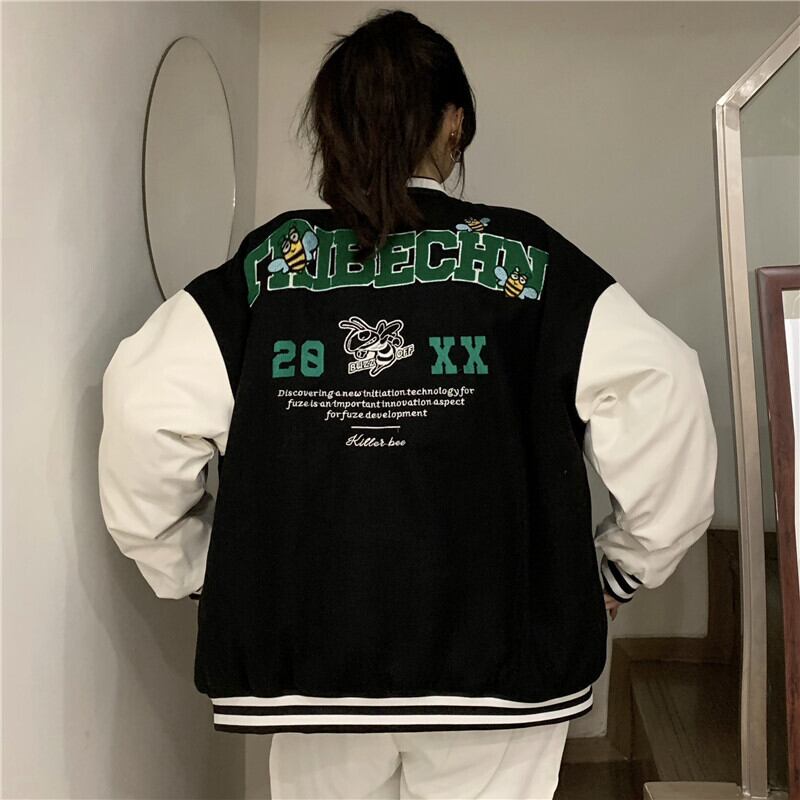 カレッジ風ジャケット! スタンドカラーでシンプルなデザインながら、シングルブレストのスタイルがおしゃれ感を演出。オーバーサイズでゆったりとした着心地で、体型もカバーしてくれます。学生やお出かけ、女子会など様々なシーンで活躍すること間違いなし!