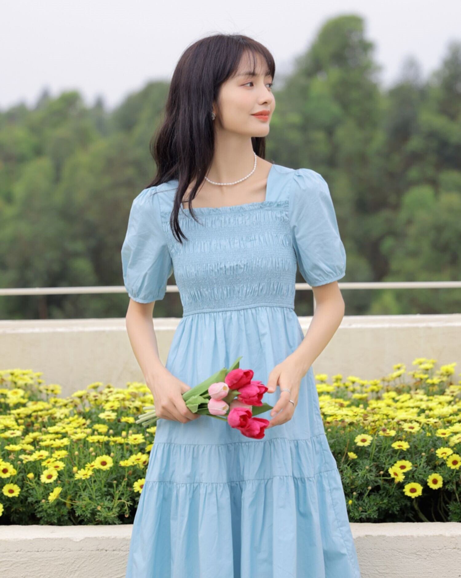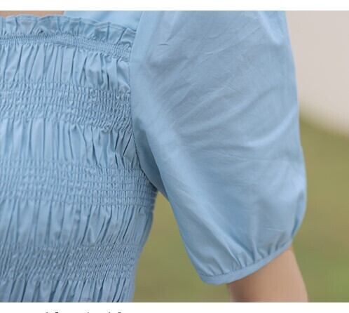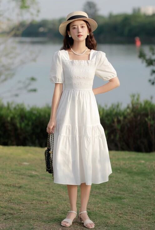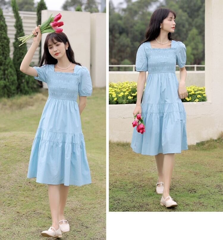 スカート部分のティアード風のライン状切り替えが個性的なシャーリングワンピースです。パフスリーブとスクエアネックが大人可愛く、ハイウエストの切り替えデザインで体型をカバーしながらスタイルアップもかなえてくれます。暑い時期のデートやお出かけ、リゾートウエアなど涼しげで上品に決めたい日にぴったりのアイテムです。
