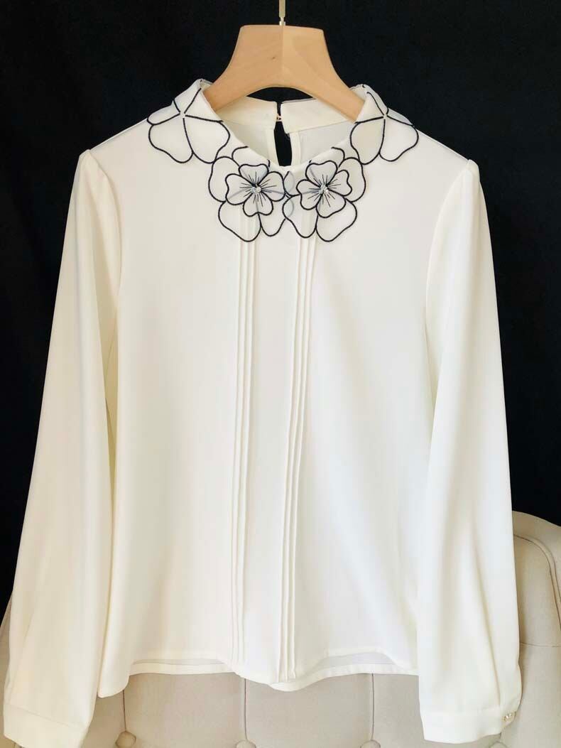レディース トップス シャツ プルオーバー 長袖 スリム 細身 ストレート ボタン かわいい 大人可愛い きれいめ シンプル カジュアル 上品 おしゃれ ガーリー エレガント ラブリー キュート 花柄 春 秋 OL 通勤 デート お出かけ パーティー イベント 女子会 ショッピング 韓国 コーデ 普段使い 着回し モテ トレンド 流行 インスタ映え S M L XL 2XL ホワイト イエロー レッド ライトブルー パープル