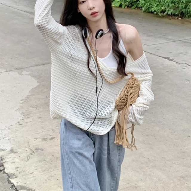 レディース トップス カットソー 長袖 萌袖 Vネック 襟なし かぎ針編み 薄手 かわいい シンプル カジュアル おしゃれ ラフ ガーリー 存在感 ベーシック ナチュラル リラックス 無地 春 夏 秋 ロングシーズン 日焼け対策 日除け 学生 デート お出かけ アウトドア 公園 女子会 休日 ショッピング コンサート ライブ お花見 カフェ 重ね着 楽ちん プレゼント プチプラ 普段使い 着回し モテ インスタ映え ゆったり ゆる フリーサイズ 白 ホワイト ベーシックカラー 春カラー