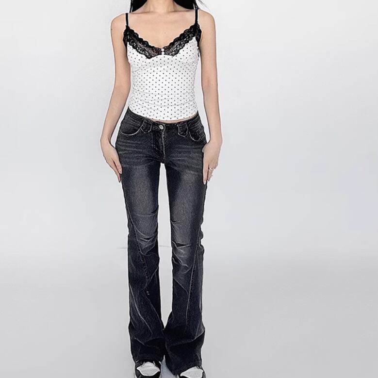 ドット柄のレースがエレガントな雰囲気を演出するキャミソール