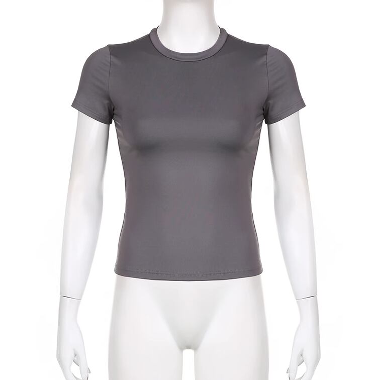 レディース トップス Tシャツ クロップド丈 半袖 ラウンドネック 襟なし タイト スリム 細身 かわいい シンプル カジュアル おしゃれ かっこいい ラフ メンズライク マニッシュ ボーイッシュ スポーティー 存在感 ベーシック 無地 春 夏 秋 ロングシーズン 学生 部活 お出かけ アウトドア 公園 休日 ショッピング コンサート ライブ 楽ちん プチプラ 普段使い 着回し 定番 S M L 小さいサイズ 大きいサイズ 白 ホワイト 黒 ブラック グレー ベーシックカラー 大人カラー