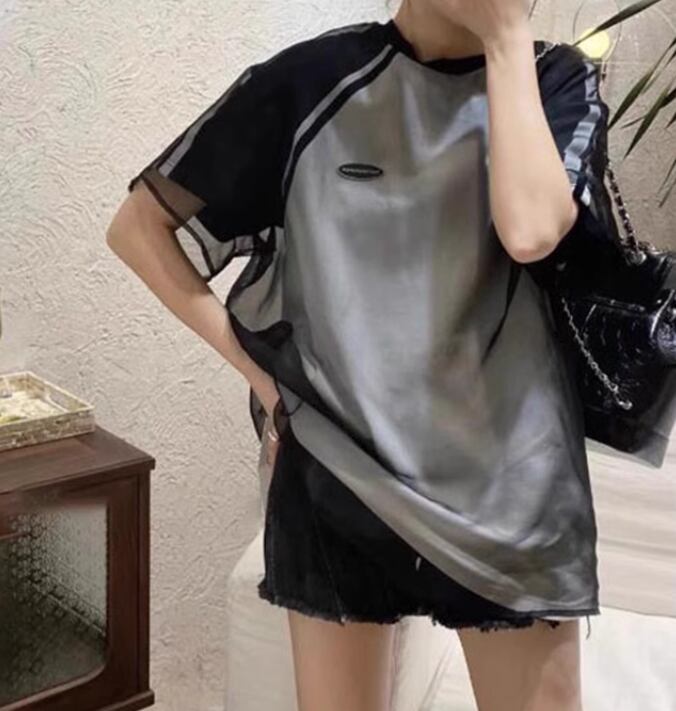 レディース トップス カットソー Tシャツ 半袖 ラウンドネック 襟なし ストリート 重ね着風 メッシュ 薄手 かわいい シンプル カジュアル おしゃれ かっこいい メンズライク マニッシュ ボーイッシュ スポーティー 存在感 ベーシック アクティブ リラックス ロゴ 春 夏 秋 ロングシーズン 学生 デート お出かけ アウトドア 公園 女子会 休日 ショッピング コンサート ライブ カフェ 韓国 オルチャン プチプラ 普段使い 着回し S M L XL 2XL 小さいサイズ 大きいサイズ 黒 ブラック
