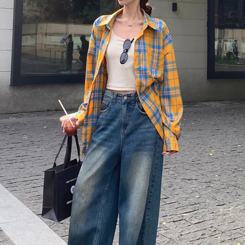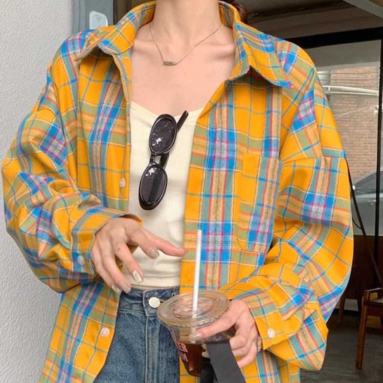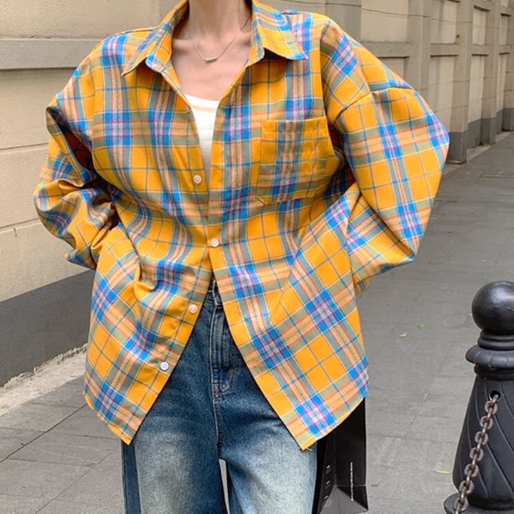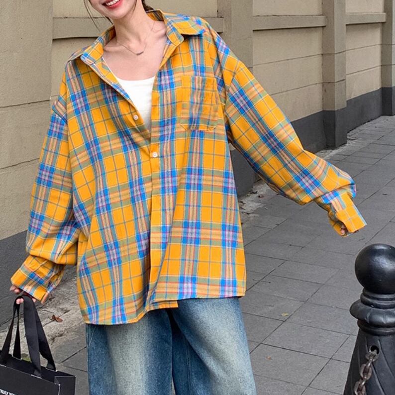 レディース トップス シャツ 上着 羽織 前開き ショート 長袖 萌袖 襟付き ワイド オーバーサイズ ポケット ボタン かわいい 大人可愛い シンプル カジュアル 上品 おしゃれ かっこいい レトロ こなれ感 ラフ ボーイッシュ ルーズ 個性的 クール 主役級 存在感 抜け感 キュート 学生風 ベーシック アクティブ ナチュラル チェック 春 お出かけ アウトドア 公園 休日 ショッピング 重ね着 コーデ 体型カバー 普段使い 着回し トレンド インスタ映え M L XL ゆったり ゆる イエロー