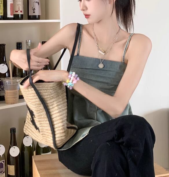 デニム素材を使用した爽やかなブルーデニムが、大人可愛い雰囲気を演出してくれます。