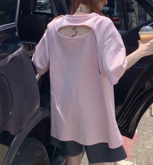 レディース トップス カットソー Tシャツ 丈長 半袖 ラウンドネック 襟なし 背中開き オーバーサイズ かわいい シンプル カジュアル おしゃれ ラフ ルーズ 存在感 ベーシック アクティブ リラックス 無地 春 夏 秋 ロングシーズン 学生 デート お出かけ イベント 公園 女子会 休日 ショッピング コンサート ライブ お花見 カフェ 韓国 オルチャン 楽ちん 体型カバー プチプラ 普段使い 着回し モテ インスタ映え 定番 S M L XL 2XL 小さいサイズ 大きいサイズ ゆったり ゆる