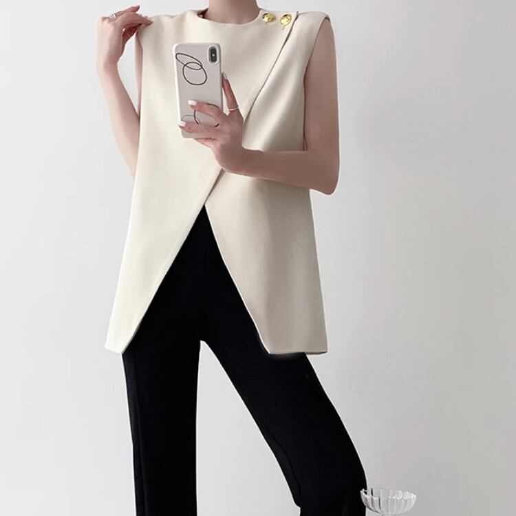 レディース トップス キャミソール 袖なし ノースリーブ ラウンドネック ワイド アシンメトリー 異国風 ボタン かわいい 大人可愛い きれいめ シンプル カジュアル 上品 おしゃれ かっこいい レトロ こなれ感 ラフ ガーリー ルーズ 個性的 クール モード系 エレガント モダン 主役級 存在感 とろみ感 抜け感 ラブリー キュート 都会的 ロマンティック 無地 夏 デート お出かけ イベント 休日 バカンス コーデ 楽ちん 体型カバー モテ トレンド インスタ映え S M L ゆったり ゆる ホワイト
