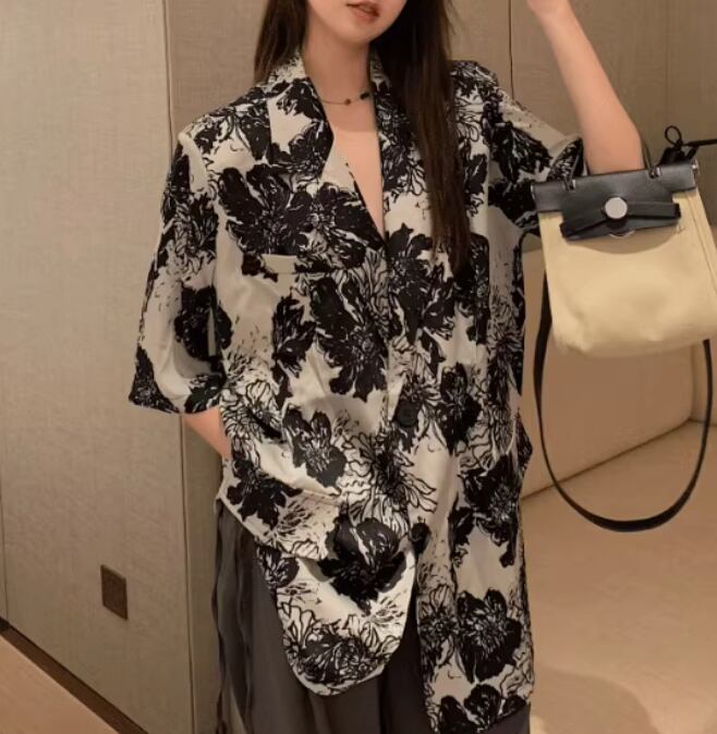 レディース トップス シャツ 羽織 前開き 半袖 襟付き 胸ポケット かわいい 大人可愛い カジュアル おしゃれ かっこいい メンズライク マニッシュ ボーイッシュ 個性的 存在感 リラックス 花柄 フラワー 春 夏 秋 ロングシーズン 学生 デート お出かけ イベント 女子会 休日 ショッピング コンサート ライブ お花見 カフェ 重ね着 韓国 オルチャン 楽ちん プチプラ 普段使い 着回し インスタ映え S M L XL 2XL 小さいサイズ 大きいサイズ ゆったり ゆる 大人カラー