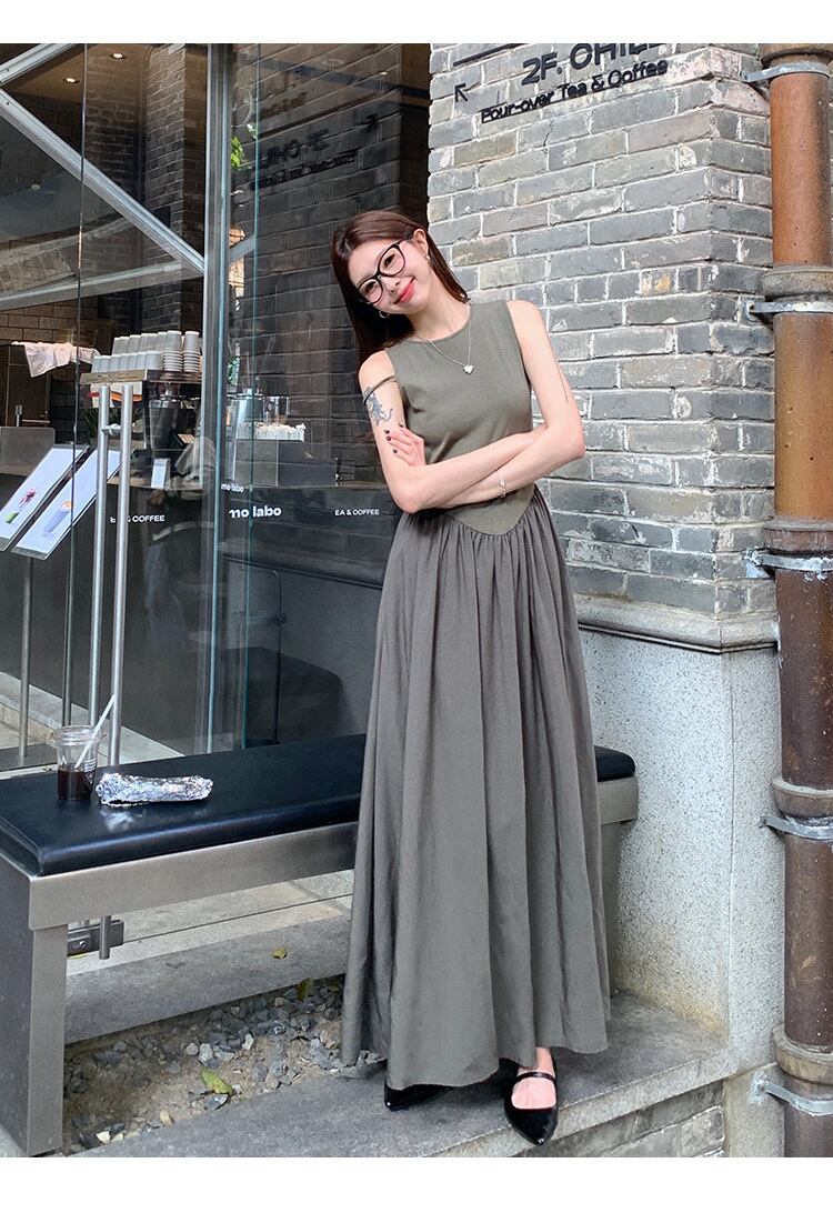 レディース ワンピース デート フレアワンピース ワンピドレス ロング ロング丈 袖なし ノースリーブ ラウンドネック クルーネック 襟なし フレア ワイド Aライン 切り替えデザイン ドッキング かわいい 大人可愛い きれいめ シンプル カジュアル 上品 おしゃれ お洒落 レトロ 大人女子 こなれ感 ラフ ラブリー キュート ガーリー 個性的 クール モード系 エレガント モダン 主役級 存在感 抜け感 レディース デート お出かけ 女子会 休日 着回し 普段使い ファッション スタイル モテ 定番