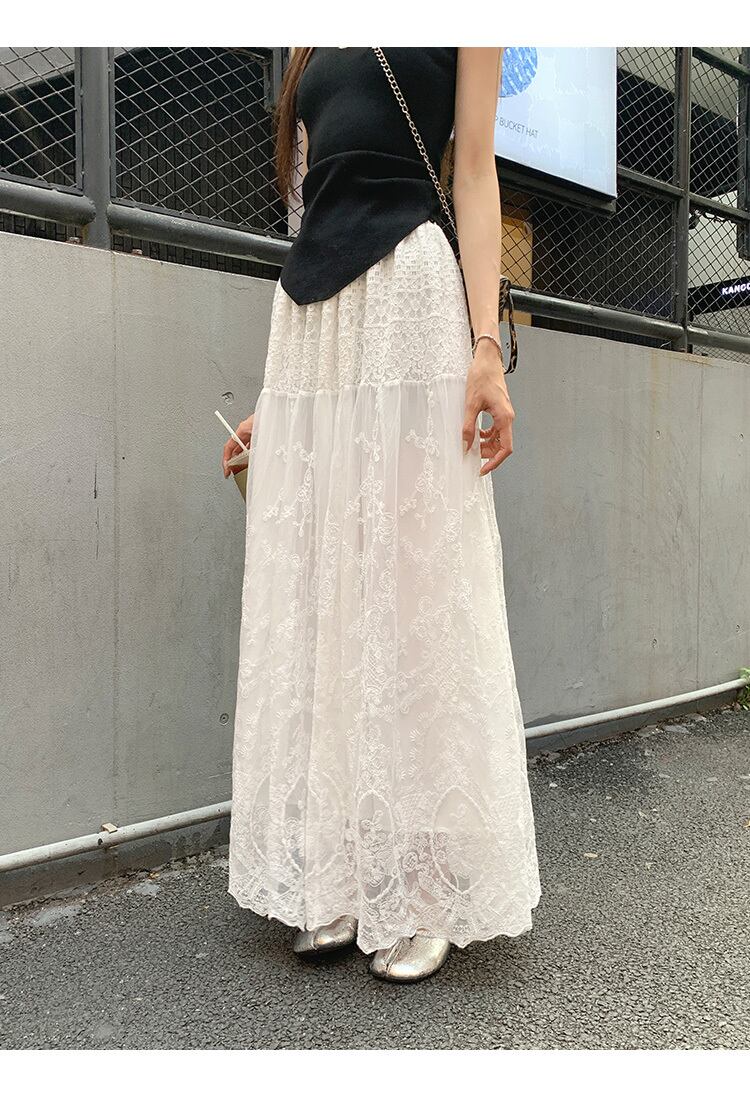 レディース スカート デート レース ロングスカート フレアスカート ロング ロング丈 フレア ワイド Aライン 透け感 薄手 かわいい 大人可愛い きれいめ シンプル カジュアル 上品 おしゃれ お洒落 レトロ 大人女子 こなれ感 ラフ ラブリー キュート ガーリー 個性的 クール モード系 エレガント モダン 主役級 存在感 抜け感 レディース デート お出かけ 女子会 休日 着回し 普段使い ファッション コーデ スタイル モテ プレゼント 定番 トレンド インスタ映え
