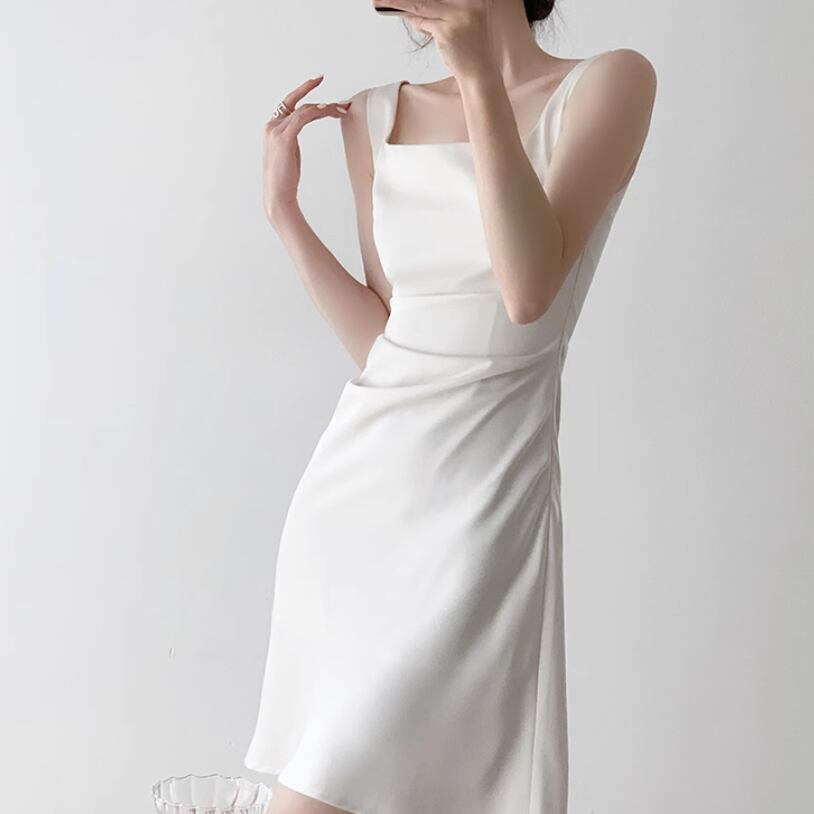 レディース スカート ワンピース ドレス ミニスカート ミニ ショート 袖なし ノースリーブ スクエアネック スリム 細身 Aライン スマート かわいい 大人可愛い きれいめ シンプル カジュアル 上品 おしゃれ レトロ ガーリー 個性的 クール モード系 エレガント モダン 主役級 存在感 とろみ感 抜け感 ラブリー キュート クラシカル ロマンティック ナチュラル 無地 夏 デート お出かけ リゾート レストラン バカンス コーデ 美脚 脚長 モテ 清楚 トレンド インスタ映え S M L ホワイト