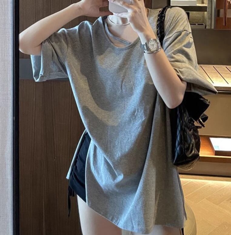 レディース トップス Tシャツ 丈長 半袖 ラウンドネック オーバーサイズ ストリート スリット サイドスリット かわいい シンプル カジュアル おしゃれ かっこいい ラフ メンズライク ボーイッシュ 存在感 ベーシック アクティブ リラックス 無地 春 夏 秋 ロングシーズン 学生 デート お出かけ 女子会 休日 ショッピング コンサート ライブ カフェ 韓国 オルチャン プチプラ 普段使い 着回し インスタ映え S M L XL 2XL 小さいサイズ 大きいサイズ ゆったり グレー ベーシックカラー