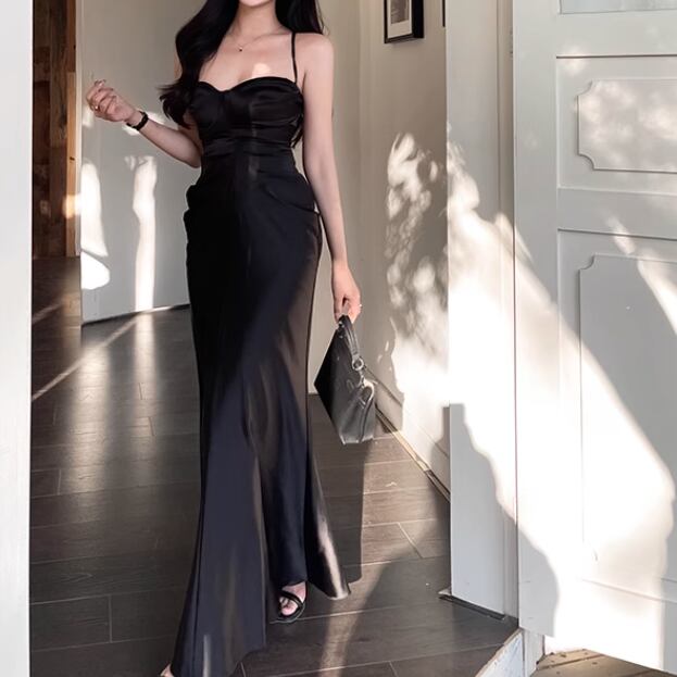 サスペンダードレス ドレス ワンピース パーティー 演奏会 発表会 ステージ 舞台 キャバ 衣装 ラウンジ クラブ ロング 袖なし ノースリーブ スレンダー スリム 細身 ハイウエスト サテン 可愛い きれいめ シンプル カジュアル 大人可愛い 上品 おしゃれ かっこいい レトロ エキゾチック キュート クール モード モダン 主役級 存在感 とろみ感 抜け感 クラシック ゴージャス エレガント セクシー シック 華やか クラシカル 無地 イベント 脚長 光沢感 S M L XL ブラック パープル