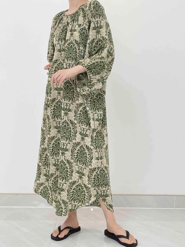 レディース ワンピース ロングワンピース ロング 7分袖 ボリューム袖 ラウンドネック かわいい おしゃれ アジアン エスニック エキゾチック ラフ ガーリー ルーズ 個性的 存在感 ナチュラル ボヘミアン 春 夏 秋 ロングシーズン デート お出かけ リゾート 海 ビーチ 女子会 休日 ショッピング コンサート ライブ カフェ 楽ちん 体型カバー プチプラ 普段使い 着回し モテ インスタ映え ゆったり ゆる フリーサイズ グリーン 緑 ベーシックカラー 大人カラー 春カラー